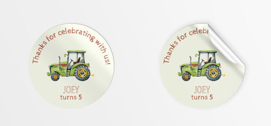 Tractor party bag stickers