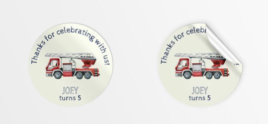 Fire truck party bag stickers